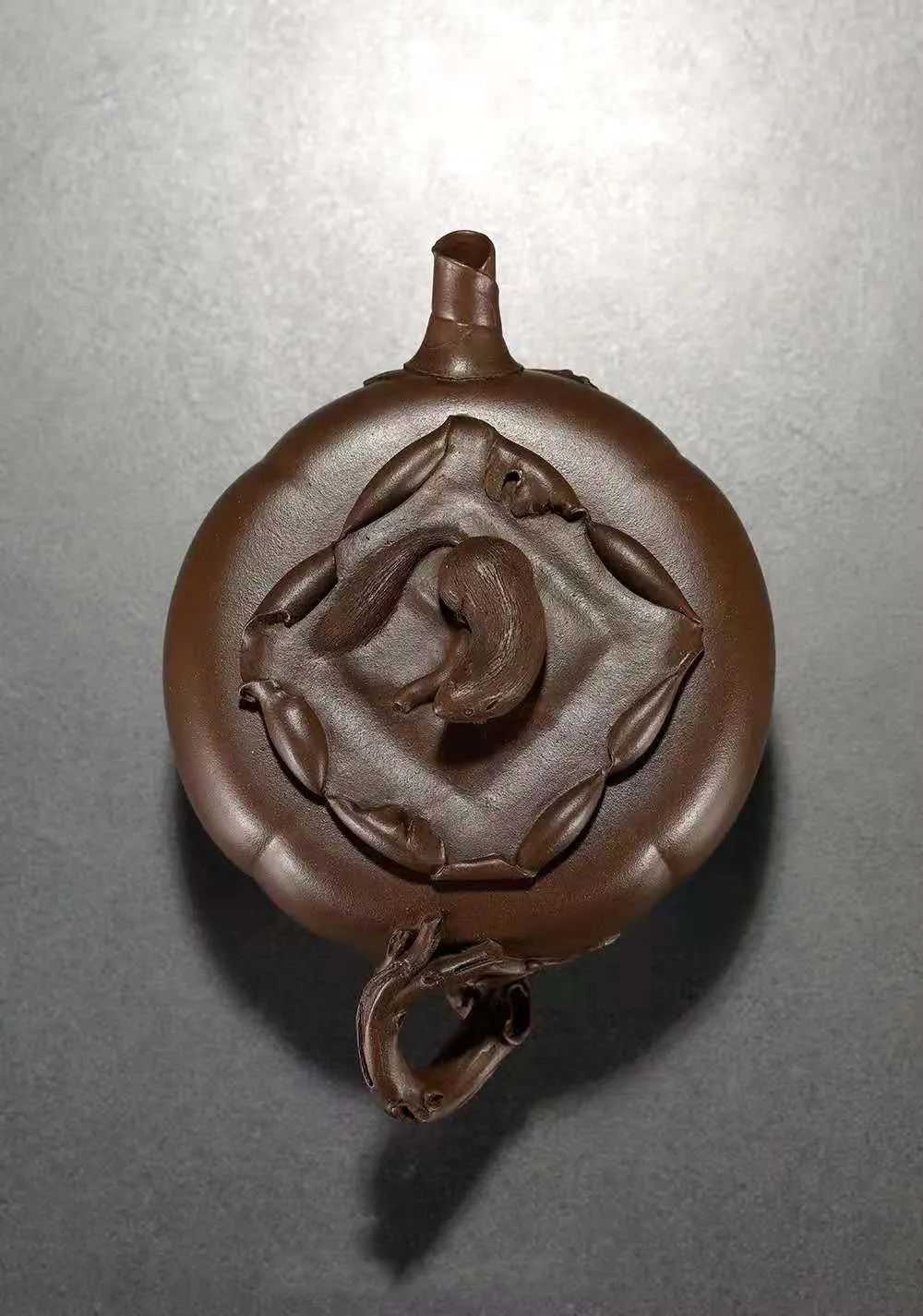 源于生活,高于生活是她的艺术追求,抽象与自然写实相结合是她的壶艺风格。