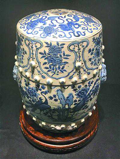 青花花鸟图绣墩(陶瓷)