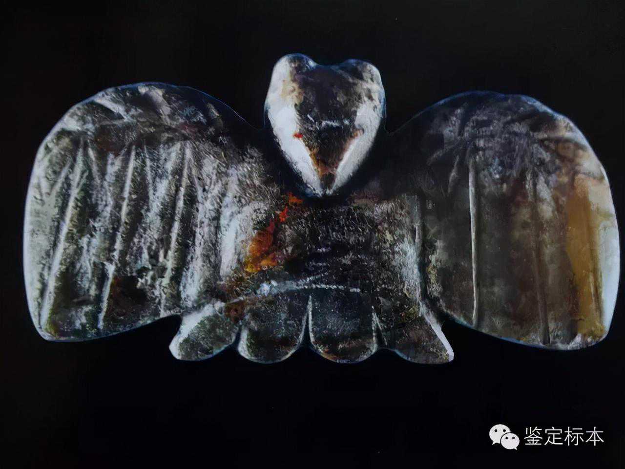 蠟質光,油潤度高,油潤從內部發出來,特別的厚重,厚重的光澤也來自於不平的表面造成的散光,散光分幾重,油潤而特別厚重,這種厚重的光澤不能仿製,只能依靠歲月的積累!!!這正是玉器複雜的光澤表現之一,這種特性也能幫助我們確定玉鷹的年代,光澤的複雜性是對一個鑒定家鑒定能力的挑戰。