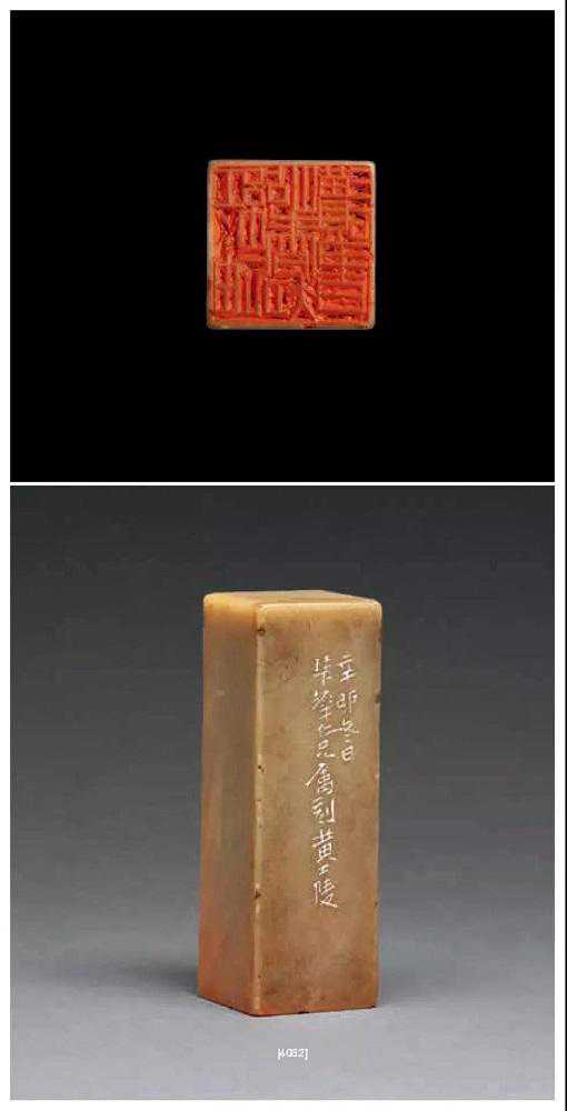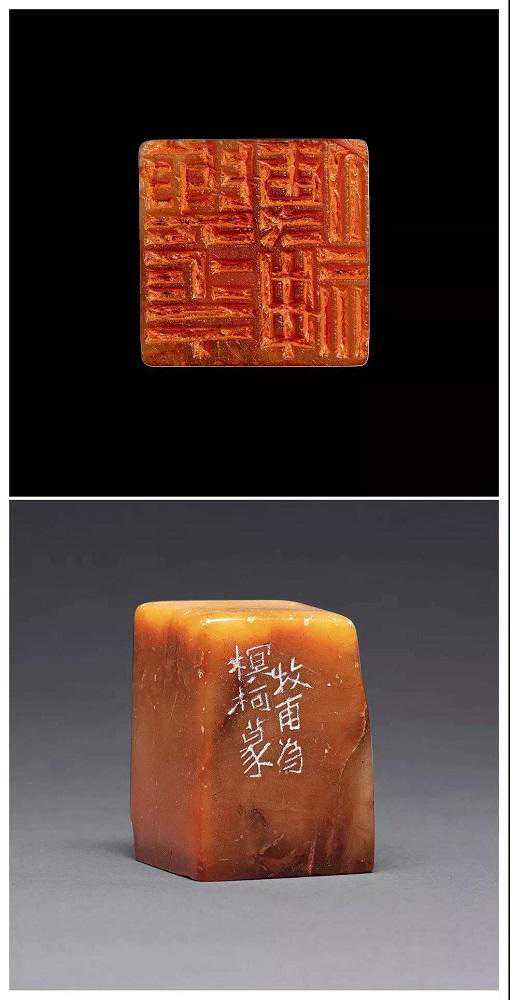 黄士陵刻“与花传神”寿山石印章边款:曼生作,牧甫仿。