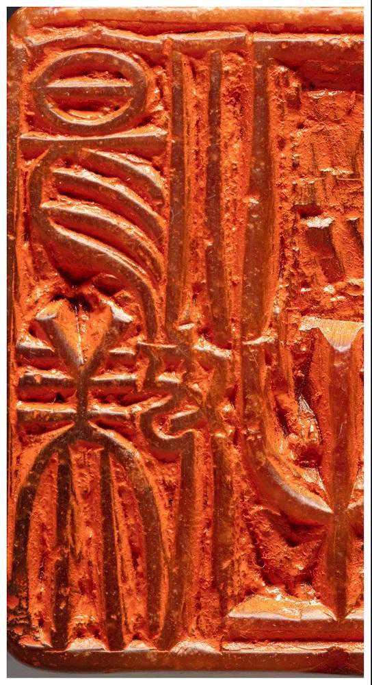 黄士陵刻“万物过眼皆为我有”青田石印章边款:士陵刻为伯惠大令,己亥秋日。