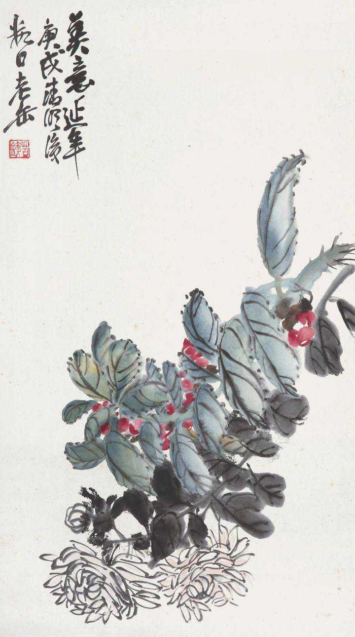 吴昌硕最擅长写意花卉,虽然从状物绘形的角度看其线条的质感似乎不够丰富、切实,但恰恰是舍弃了形的羁绊,吴昌硕的绘画才步入了“意”的厅堂,从而形成了影响近现代中国画坛的直抒胸襟,酣畅淋漓的“大写意”表现形式。
