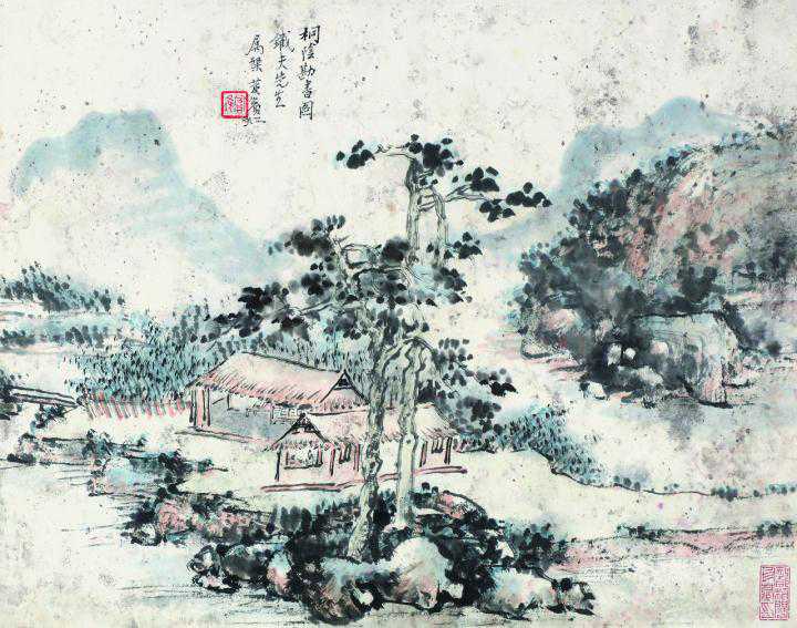 题识:桐荫勘书图。铁夫先生属粲,黄宾虹。