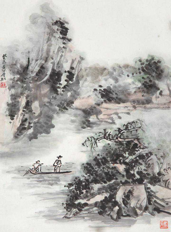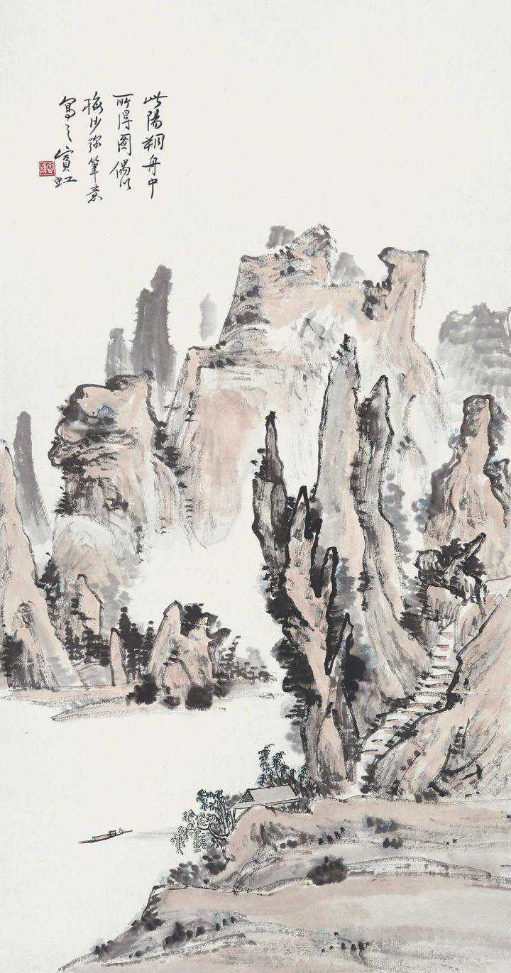 题识:此阳朔舟中所得图。偶以梅沙弥笔意写之。宾虹。