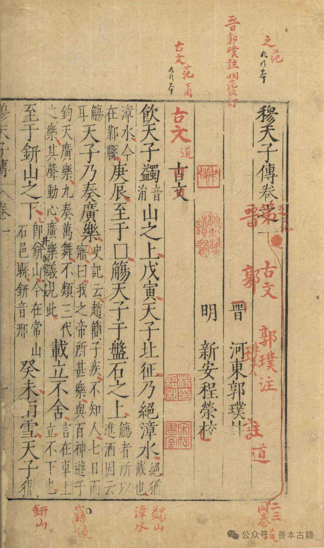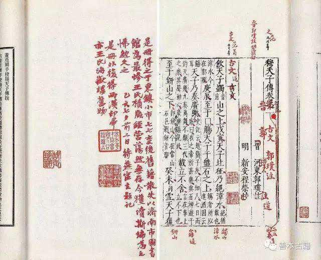 1980年,顾廷龙先生在为周先生撰写《自庄严堪勘书图跋》时也记录了两人讨论《穆天子传》一事,称:周叔弢先生“尝收藏黄荛圃校《穆天子传》一书,为王君献唐故物,曾付景印,或以为影印本与先生所藏原本略有出入,遂传真本尚在山东某氏,秘不示人,称与影印本丝毫不爽。龙请观比勘,影印本与原本确有不同之处,如朱笔之深淡,校文位置之参差,点画略见肥瘦,谛审再三,始怳然当时影印条件较差,摄影、套版、描润三者技术皆不精,遂失真面,滋人疑窦耳。其为黄校亲笔,固无庸致疑矣。具见明眼精鉴,非后生所能企及万一也。”(《顾廷龙文集》第244页)新中国成立后,周叔弢先生将自己珍藏的全部宋椠元刊、名抄佳刻举献国家。这部黄氏校跋本《穆天子传》,遂化私为公,入藏天津图书馆。现已入选第二期《国家珍贵古籍名录》。