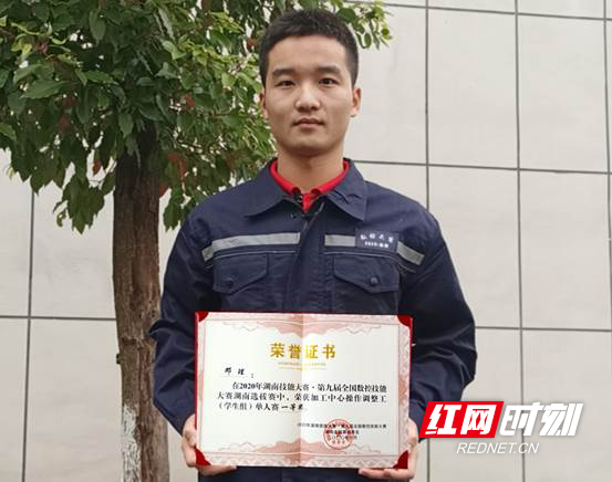 常德技师学院学生邓理收获大赛加工中心操作调整工(五轴联动加工技术)项目一等奖。