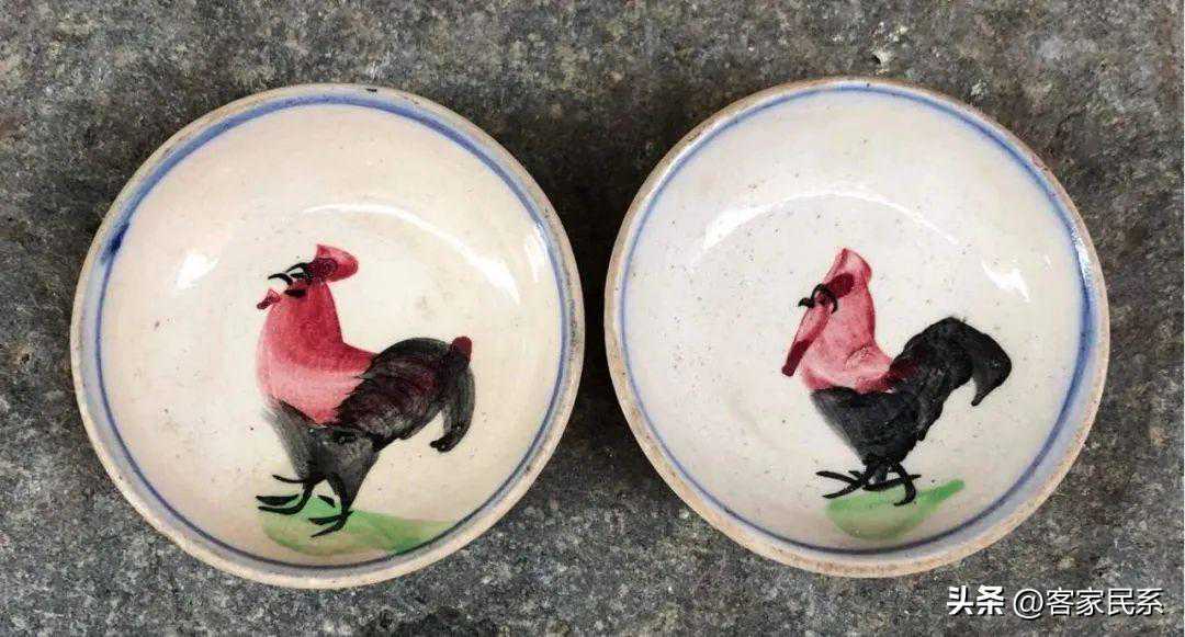 因为客家人分布广泛,工匠的手艺也不一样,所以,不同地方的鸡公碗会有材质、造型上的差异,唯一不变的是:碗外最显眼的图案一定是雄鸡。