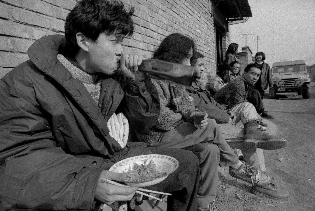 1993年,画家村最盛的时候,那年春节大约有三四十个人都没回去,就聚在一起喝酒,看春节晚会,我和我爱人也去了。酒喝完了,他们就开始狂欢地跳舞,砸啤酒瓶,最后满地都是玻璃渣,直闹到后半夜才散场。