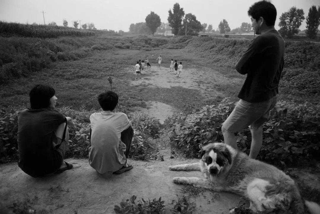 画家们在宋庄干涸的鱼塘里踢球1999年