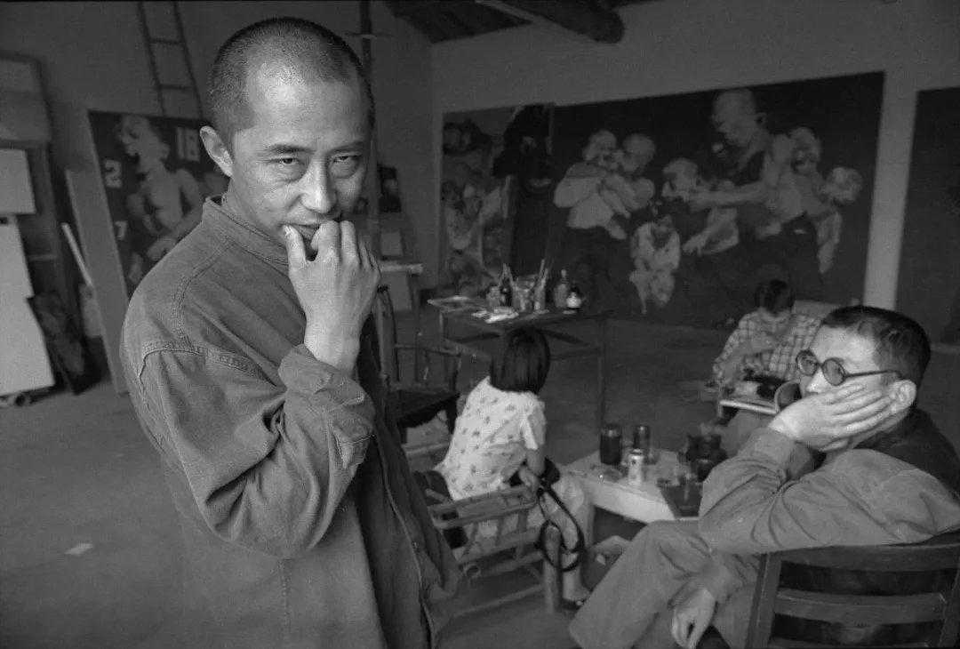 方力钧在圆明园画家村的工作室接受德国媒体专访1993年