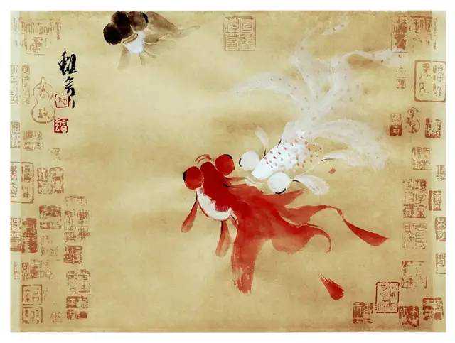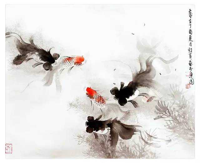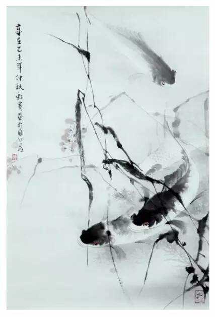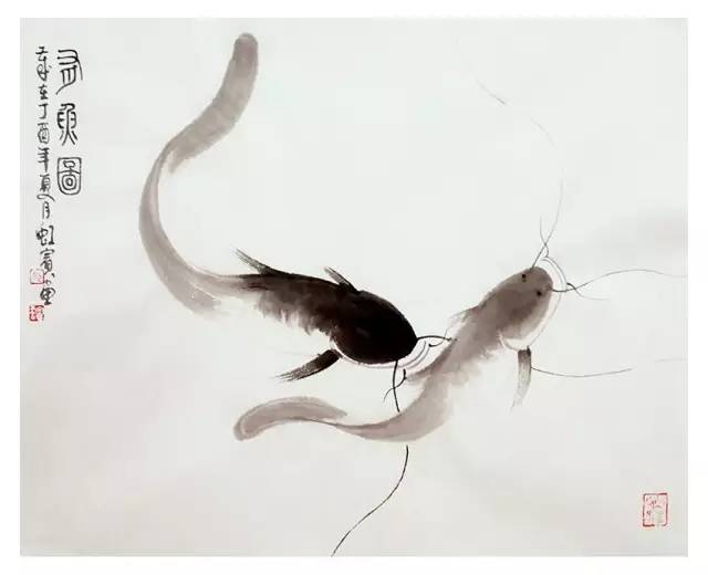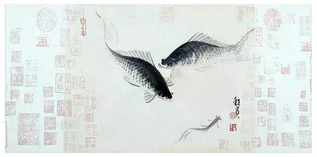 鱼的绘画题材,古已有之;记得小时候上学的课本彩页,就有鱼的图形在出土的新石器彩陶上。盖其意吉祥,如连年有余、鱼跃龙门等等,所以深受人民喜爱。