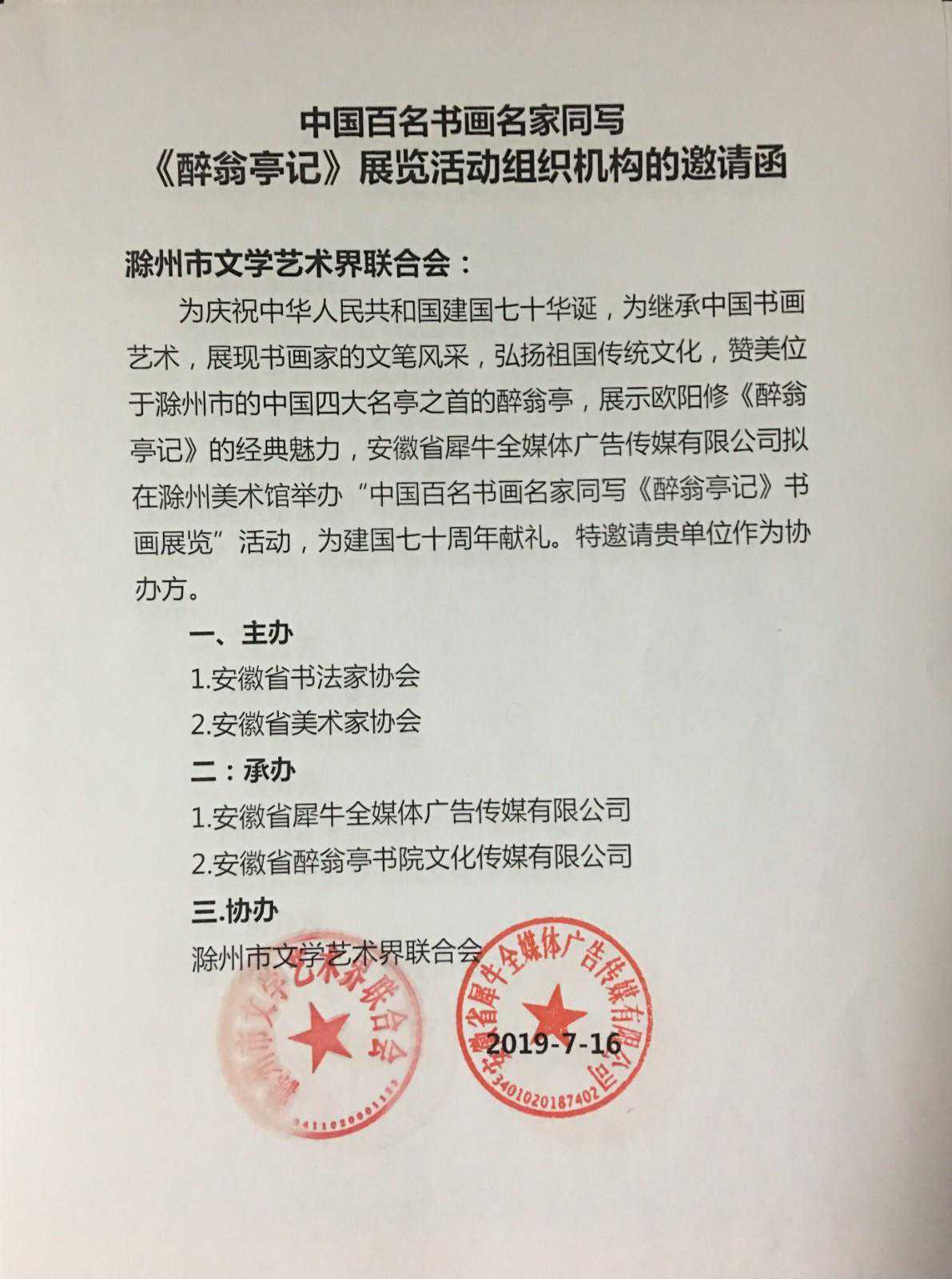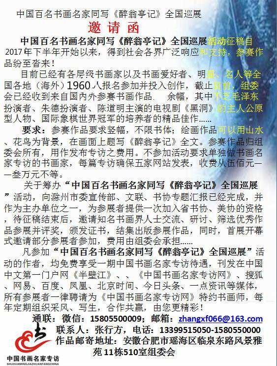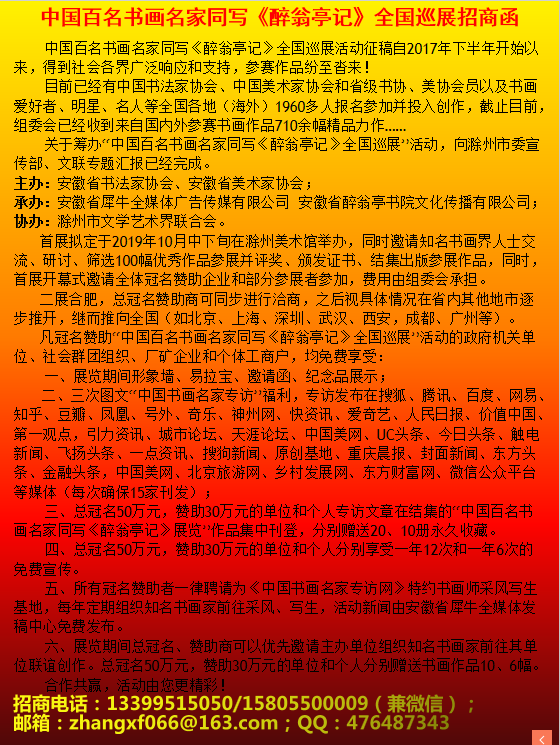 中国百名书画名家同写《醉翁亭记》全国巡展招商函