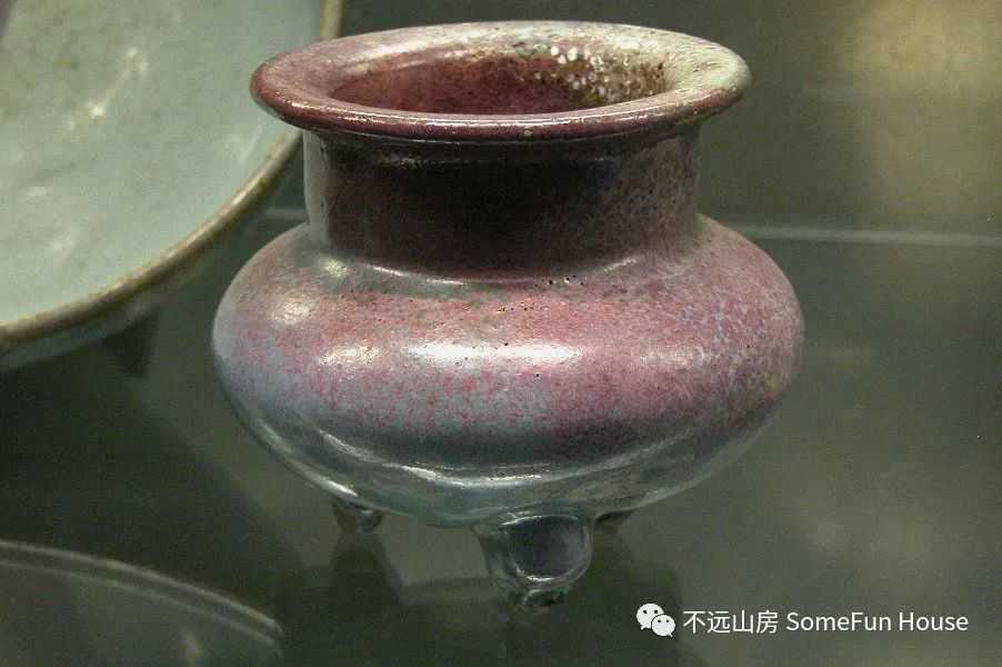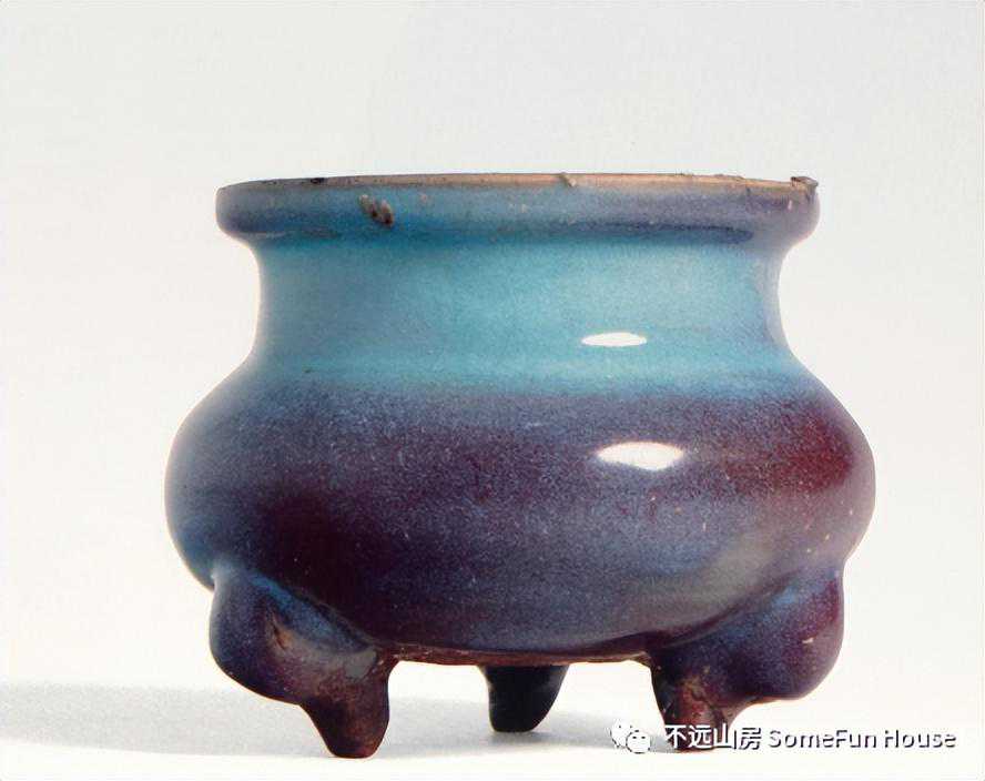 大都会艺术博物馆藏金代钧窑天青釉玫瑰红窑变三足炉