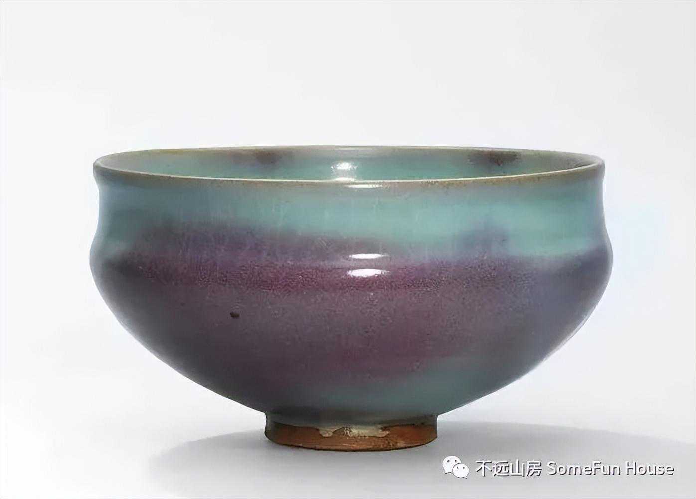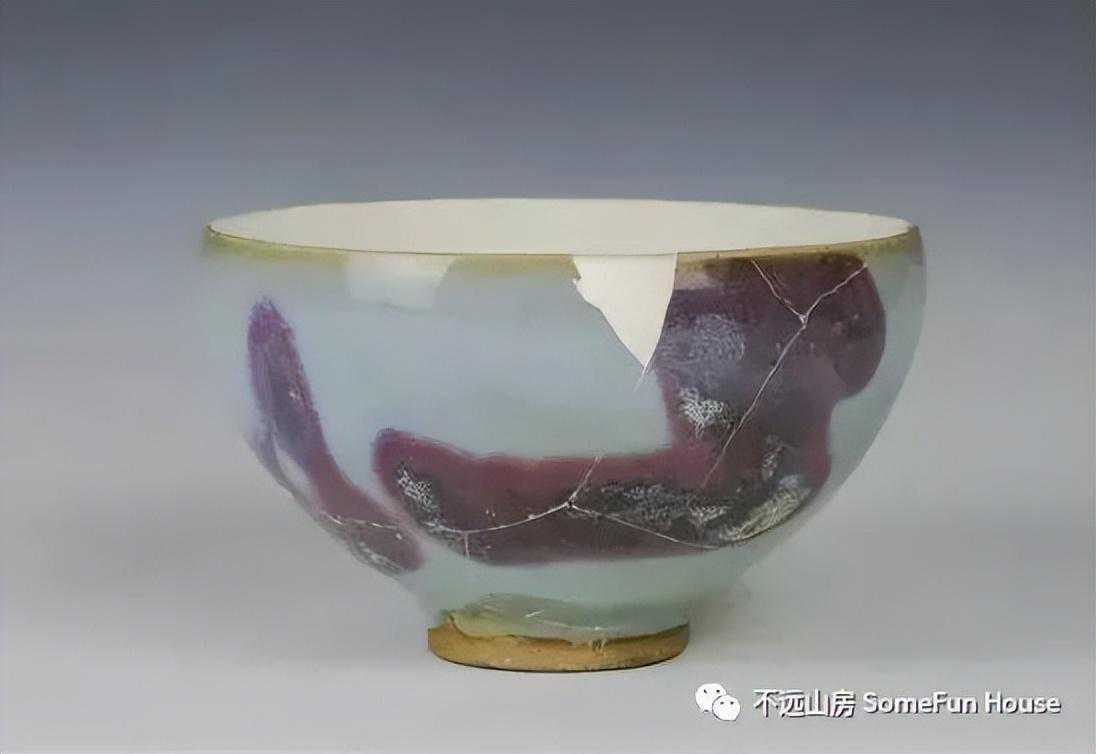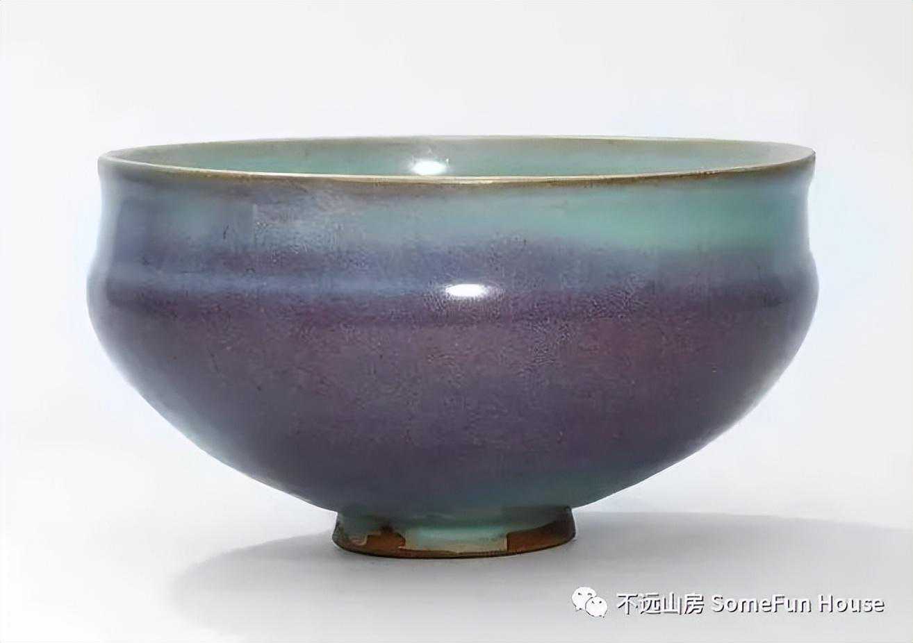 大都会艺术博物馆藏金代钧窑天青釉玫瑰红窑变碗