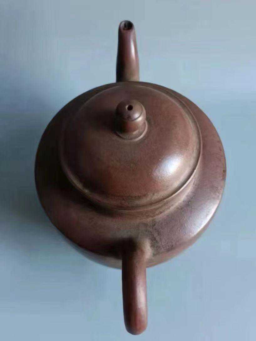 时大彬还听从董其昌、陈继儒、王时敏等文化名家的建议,改笨重俗气的大壶为精致文雅、灵巧秀气的小壶,并在壶身铭刻诗文书法印章,使紫砂壶更适合文人雅士的饮茶把玩,文人雅士可一手捧壶,一手翻书、执扇或下棋等,把文人情趣引入壶艺,把壶艺推向一个全新的高度。本人有幸收藏一把“时大彬制”款宫灯壶,大把手,三弯流,仿古代宫廷宫灯造型,高端大气,富有艺术气息和观赏美感。