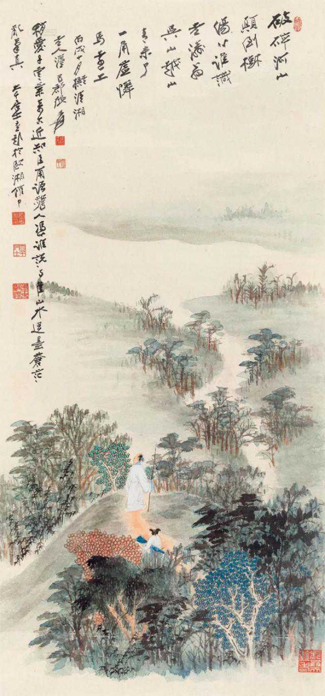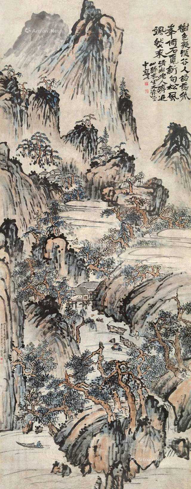 1.大千居士仿石涛上人设色山水