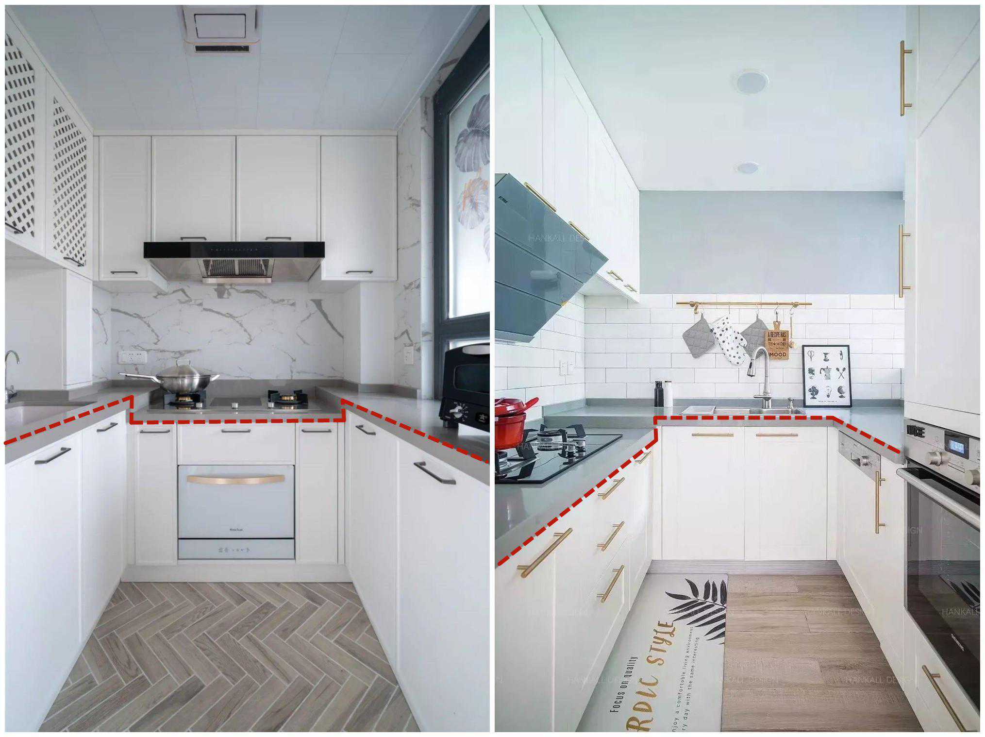 再来说说收纳空间的问题。高低台的设计使得原本可以放置碗碟餐具等物品的空间变得尴尬。高台部分因为高度问题,不方便放置物品;而低台部分又因为与高台之间的落差,使得物品摆放变得不稳定。这样的设计不仅浪费了宝贵的收纳空间,还让厨房的整洁度大打折扣。