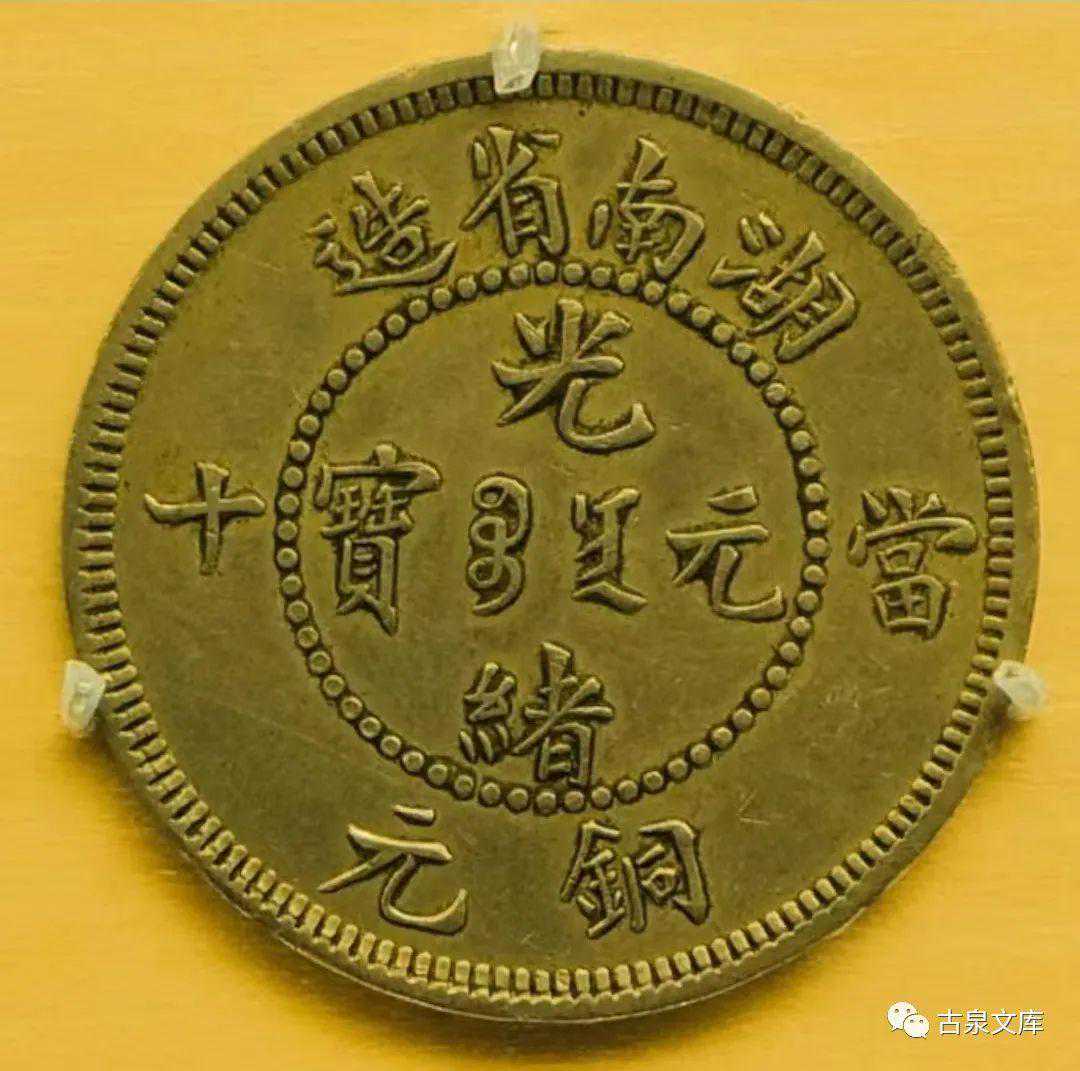 湖南省造光绪元宝当十铜元秀体字五角星白铜试样,此品系孙鼎旧藏;湖南秀体字五角星白铜试样属国内试样性质,目前已知存世2枚,最早出现于1945年第169次中国泉币学社例会,除上海博物馆此品外,另一品为马定祥旧藏;