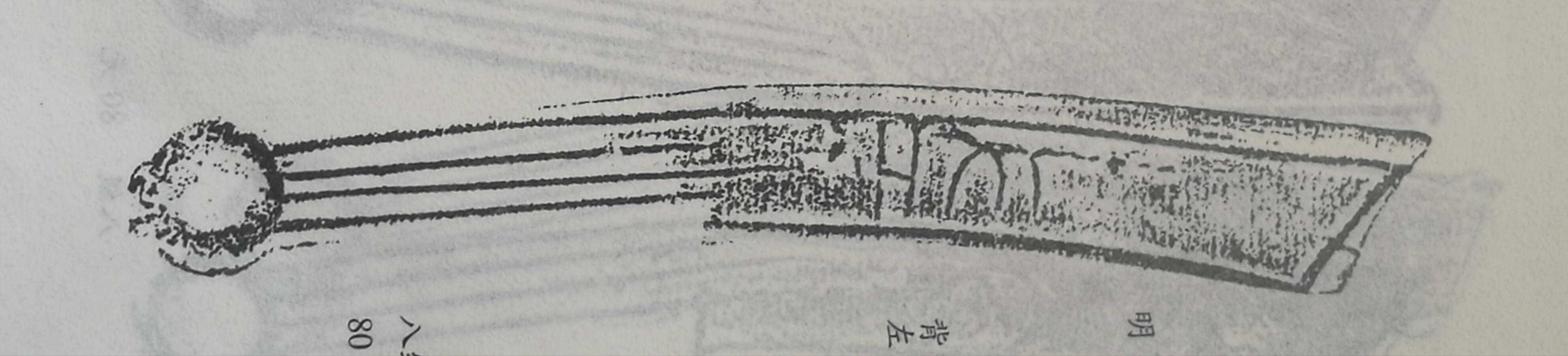 战国中晚期期燕国圆折“明”背七平首刀,较多品种,八级币,残品,市场参考价1500元。