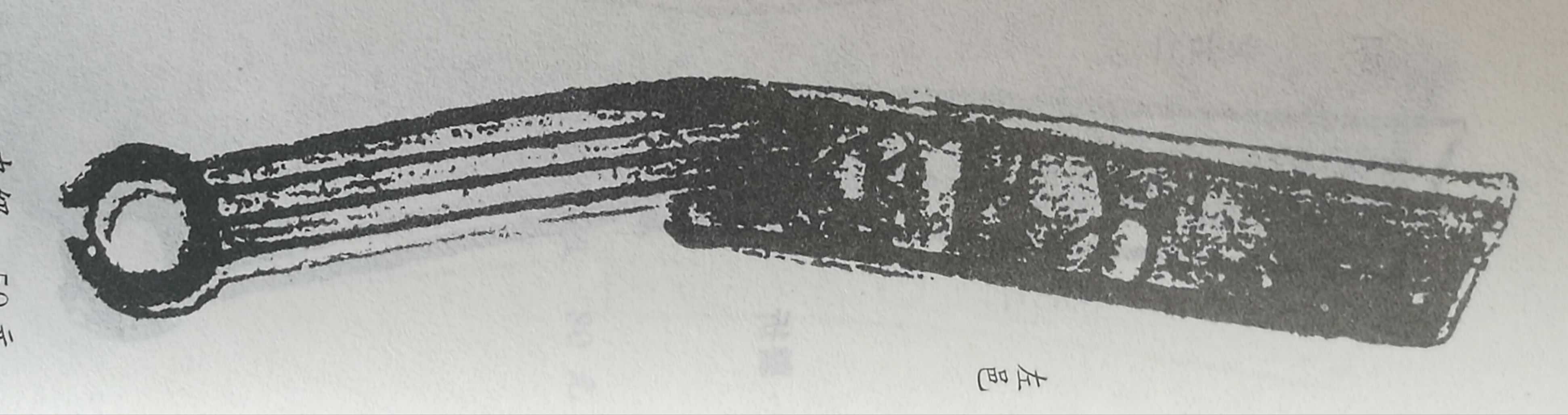 战国中晚期期燕国謦折“明”背内平首刀,常见多品种,九级币,美品,市场参考价600元。